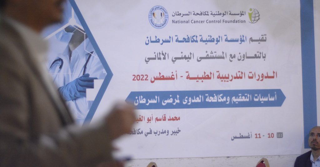 دشنت المؤسسة الوطنية لمكافحة السرطان بالتعاون مع المستشفى اليمني الألماني يوم الأربعاء ١٠أغسطس أولى الدورات التدريبية الطبية، بعنوان (أساسيات مكافحة العدوى والتعقيم لمرضى السرطان) ل... Continue reading